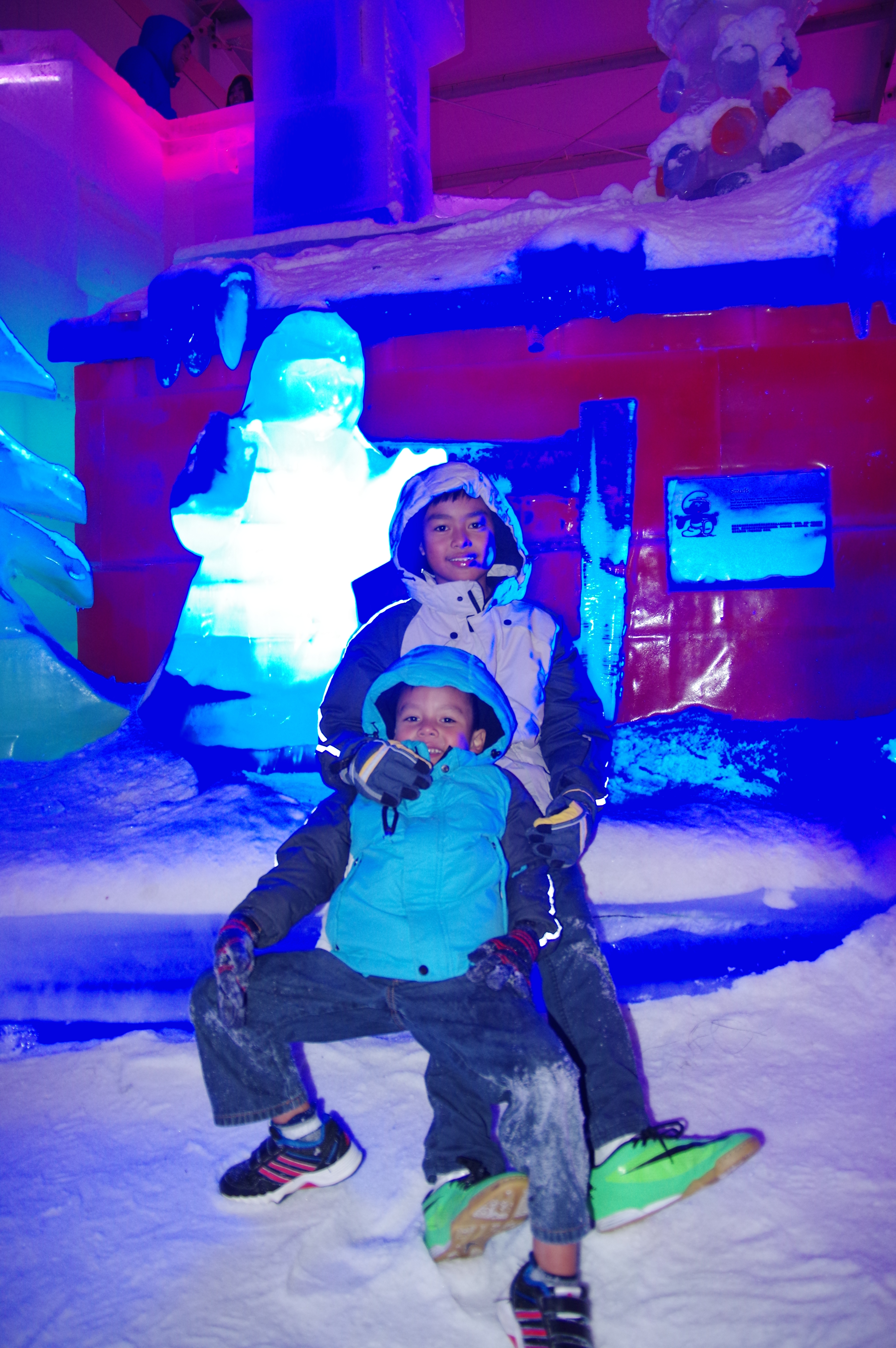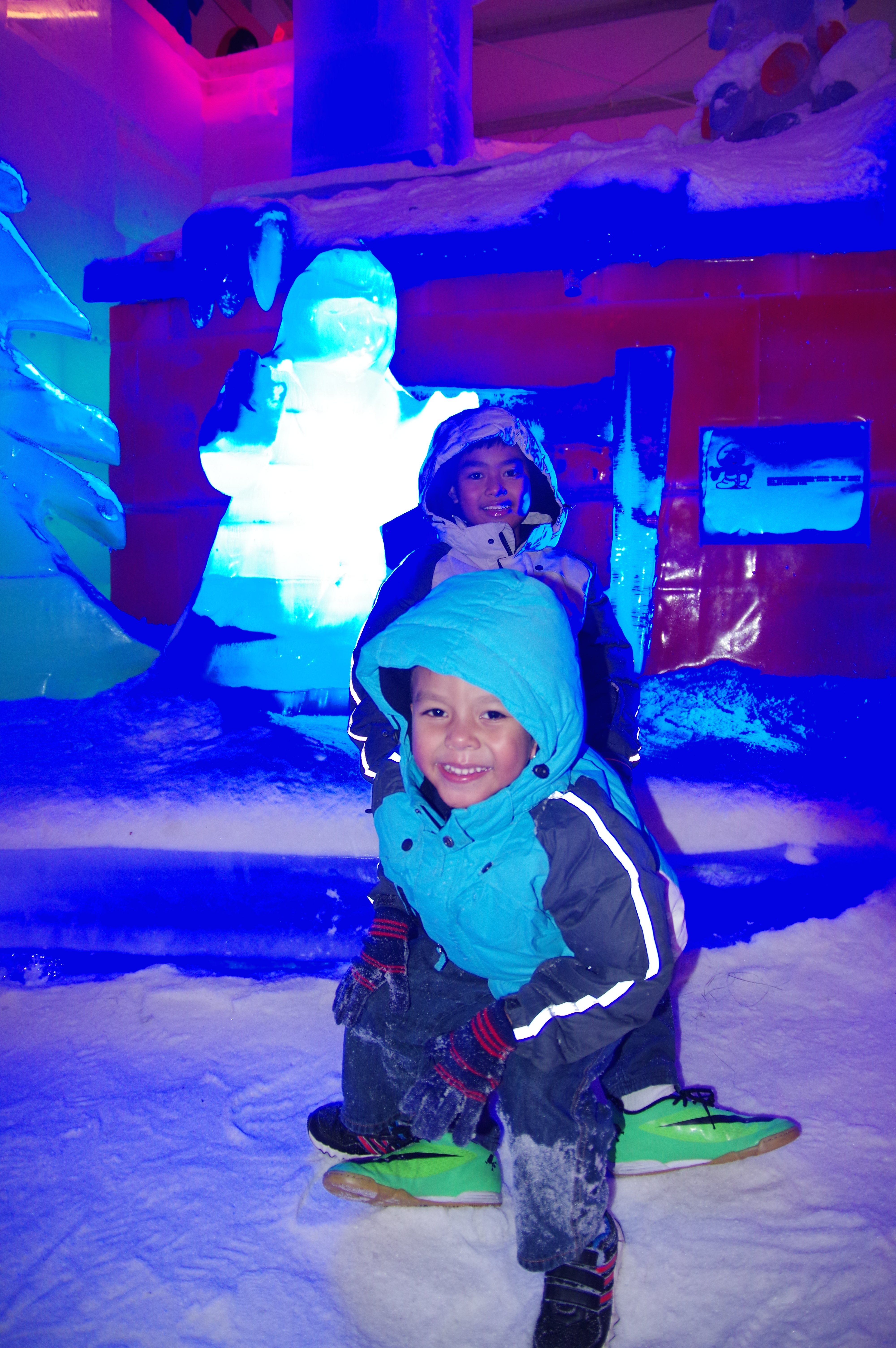 A freezing Saturday afternoon with the boys. They had fun with doughnut ice slide! 😀